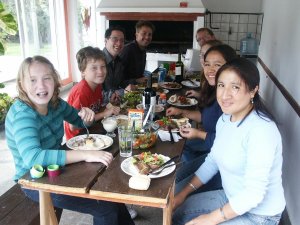 Last weekend we had two sets of visitors. Elvi came down on Saturday afternoon from Buenos Aires with her sister, Jacqui. On Sunday we were joined by my brother, Kevin Stuart, and his friend Tom Henriksen. Kevin and Tom both live in Los Angeles and have been friends since junior high (i.e., a long time). They’d arrived in Buenos Aires a few days earlier and had already experienced more night life and urban excitement than is even possible down here in tranquil City Bell. Kevin delivered MANY paperback books that I’d ordered for the kids, enough to keep up with their voracious reading habits until we leave, and then after a delicious asado we took off for the airport. Destination: Mendoza, a city on the western edge of the country, up next to the Andes. Mendoza is the center of Argentina’s wine production, with about 70% of the grapes grown in the province. Kevin’s a wine distributor and was interested in seeing what the Argentine fuss was all about. Tom and I were only too happy to accompany him on the journey. And as the kids said, mom was in need of “recharging her batteries.”
