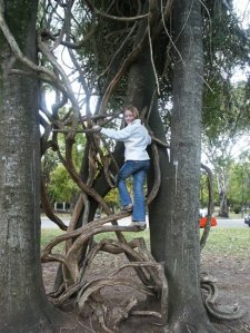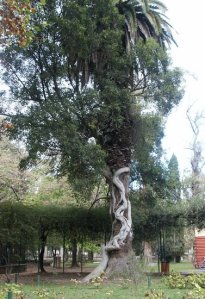 On Saturday we went to La Plata to go sight seeing. We saw lots of cats, interesting trees including a tree on top of another tree and a tree covered in branches, a weird, white and lumpy building, a playground and animals at the zoo. The cats really live in the zoo but they usually hang out in an abandoned area. In the zoo we saw lots and lots of animals including a condor, a toucan, a lion, an elephant, lots of monkeys and a giraffe.