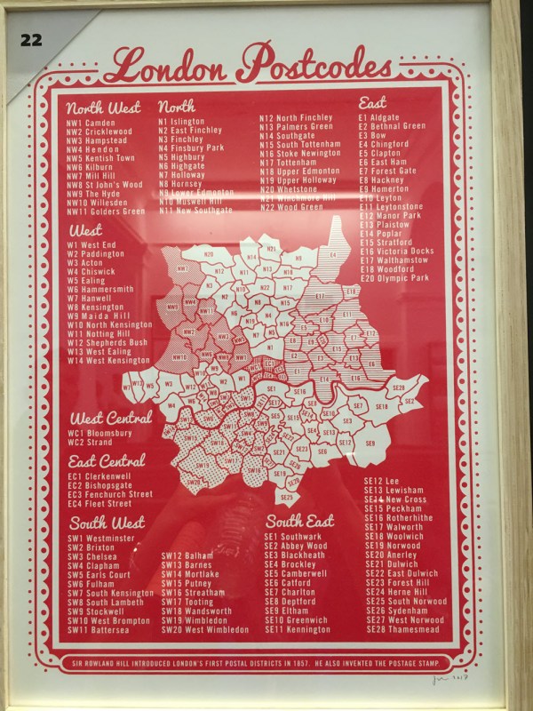 postal codes = instant geographic identification. We live in SW19 (Wimbledon).