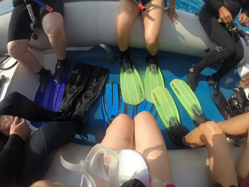 We used zodiaks to access some of the dive sites. Getting out of the small boat with full diving gear is a lot easier than getting back in.
