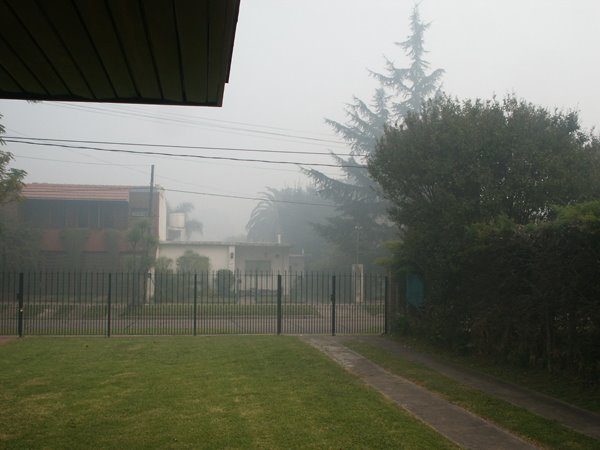 The massive agricultural strike ended; meat and milk are back on the shelves. Now the still-grumpy farmers have united in an interesting act of ecoterrorism. Hundreds of farmers synchronized their watches and agreed to all burn their fields at the same time. Traditionally field-burning is done on small scales to clear vestigal remains of harvested materials and return nutrients to the soils, but this (they say) is to clear additional land for cattle grazing now that their old grazing fields have been usurped for soybean production. The areas just happen to be directly upwind of the capital. The result? Smoke on the water, fire in the sky. I feel like I’m back in Southern California in October 2007 when the wildfires drove us indoors. The Buenos Aires airports have cancelled most of their flights today, the massive city bus station has shut down, and the PanAmerican Highway is blocked for great distances. These are pictures from our house at 8 am today, and for more info you can find stories and images from the Inter Press Service, BBC, Time, and NASA. Maternal worry of the day: I hope Eric’s asthma is under control out where he’s camping…
