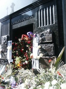 Emily and I spent the day in Buenos Aires yesterday. Our first stop was the Recoleta Cemetery, the posh place in BA to hang out for eternity. More than 20 (former) Argentine Presidents are buried there, plus many other well-known folks such as Evita Peron. Wednesday (May 7) had been Evita’s birthday, hence the unusually large amount of flowers outside her family’s mausoleum. We also found Emilio Mitre, the engineer whose name was given to the street where we used to live.