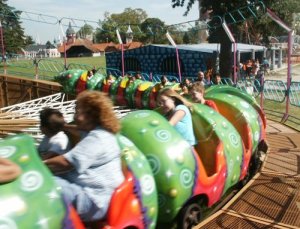 Today was spent at Republica de los Niños, a 1950s-era park very near our house. Walt Disney visited the place when it had recently opened and said it inspired him to build Disney Land. These days it’s a bit shabby around the edges, but we did get to feed llamas, ride trains, slurp ice cream, and bake in the sun. Elvi is not a big fan of spinning around upside down, or spinning around at all for that matter, so she opted out of all rides that involved leaving the surface of the Earth. Even so, the heat and just the sight of Eric and Julia (and Emily too, for that matter) on the rides made her nauseous. She wasn’t a happy camper by the end of the day. I was again grateful that the worst thing to happen was sunburn, given the lack of safety measures on all rides outside of the safety-paranoid US. Plus, spinning around upside down on ancient amusement park rides can’t be any more dangerous than driving the freeways of Southern California, statistically speaking.