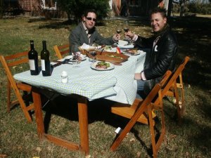 When we finally arrived at his place (WAY out in the countryside), I felt like I was walking into a photo shoot for a Food & Wine article. Table set out on the lawn, grilling meats on the parilla, bottles of (his own) wine open and breathing. Over the course of lunch we learned that he had only been making wine for 8 or so years, that the land all around had been in his family for generations, that the malbec grapes all around were also the ones that Achaval-Ferrer (and many other places) used to make their prize winning wines. He sells 95% of his grapes to places like that and with his remaining 5% makes about 10,000 bottles/year under the name of Finca Suárez. All malbec, mostly in oak barrels.