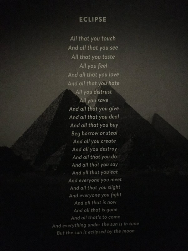 One display wall in the Victoria & Albert’s current exhibit on Pink Floyd